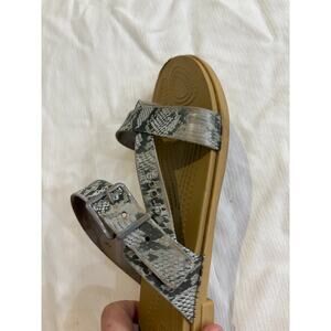 Crocs Iconic Tulum Toe Post Womens Size 9 Sandals Snake Print Open Toe Slides