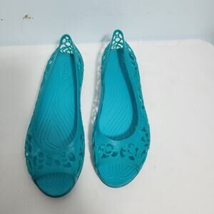 Crocs Isabella Blu/Green Jelly Flats Peep Toe Size 9 101025-2805