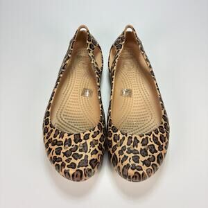 Crocs Kadee Flat Brown Leopard Print Slip On Shoes Comfort 11710 Women's Size 8