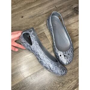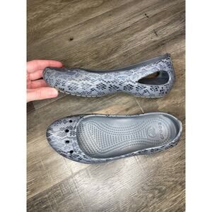 Crocs Kadee Grey Snakeskin Reptile Print Slip On Ballet Flats Womens Size 7