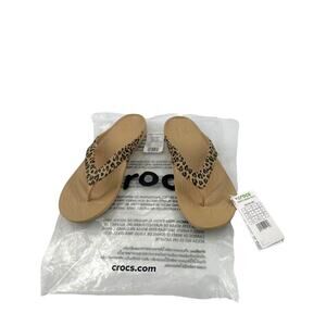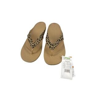 Crocs Kadee II Leopard Gold Women Leopard Flip Flop Comfy Light Sz 10 206398