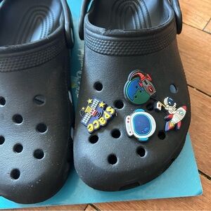 Explore the universe with these fun kids' clogs featuring a space theme. Perfect for little adventurers.