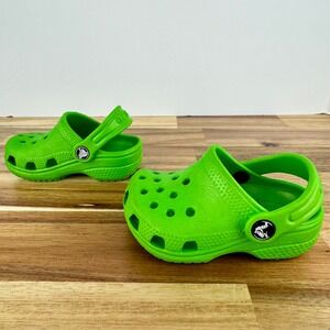 Keywords: Crocs, Clogs, Kids shoes, Green Crocs, Comfort shoes, Slip on shoes, Sandals, Toddler shoes, Classic Crocs, Play shoes, Summer shoes, Size 2, Size 3