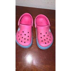 Crocs Kids Pink & Blue Rubber Slip-On Clogs Heel Strap Size 9