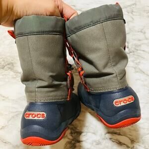 Crocs Kids Swiftwater Waterproof Boots C11 Grey Red Rain Snow
