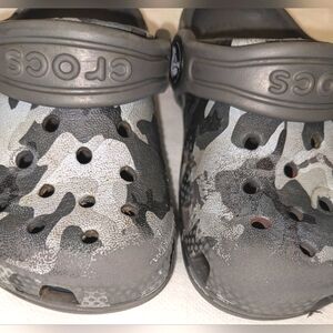 Stylish and comfortable Crocs kids clogs in a cool camo design. Perfect for everyday wear with easy slip-on style.