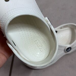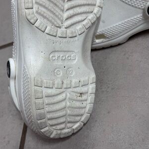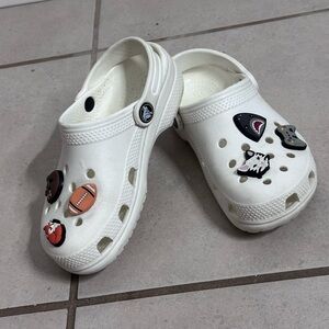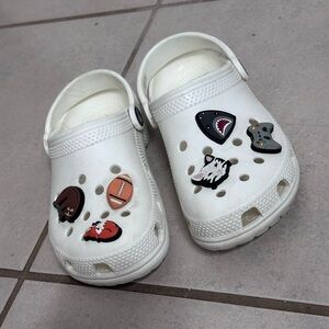 Crocs Kids Unisex Slip On Sandals White With Charms size 12. Slightly used. Excellent condition. Smoke free home. Very clean looking.