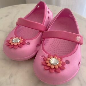 If your girls love floral and playful colors, this is the perfect Croc’s flats for them.