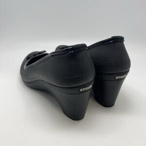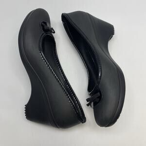 Crocs LYDIA Black Pumps 3" Wedge Heel Women's US 8 Platform Shoes Accent Bow