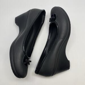 Crocs LYDIA Black Pumps 3" Wedge Heel Women's US 8 Platform Shoes w Accent Bow