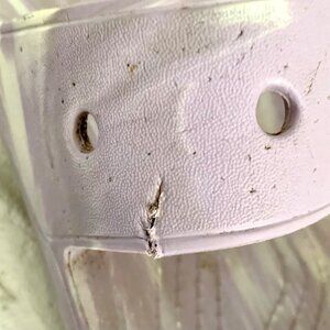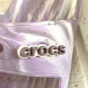 Slip into the cozy embrace of these lavender marble Crocs slides. Stylish yet practical, they'll make your feet look cooler than your fashion sense.