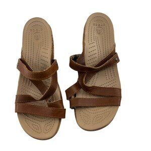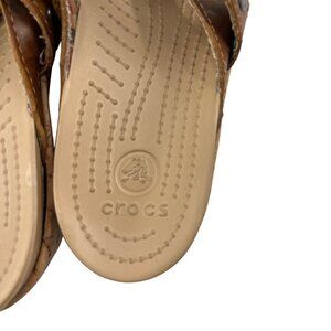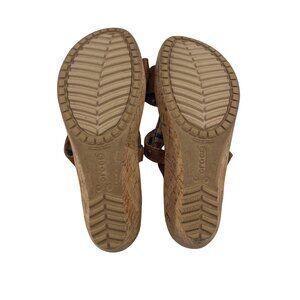 Crocs Leather Cork Wedge Strappy Sandals Women's Size 8 Brown Leather