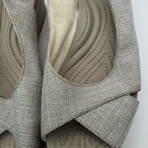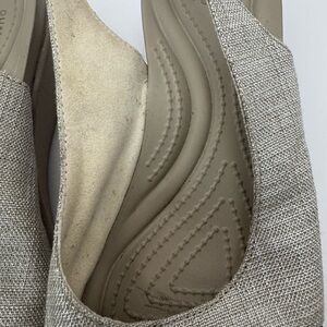 Crocs Leigh Ann Slingback Wedge Heels Womens Sz 9 Beige Fabric Sandals EUC