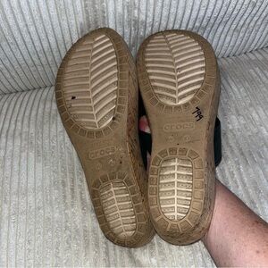 Crocs Leigh Flower Leather Flip Flop Sandal Cork Platform Wedge Black 10