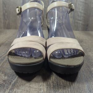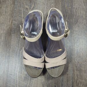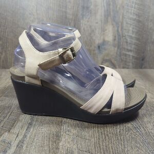 Crocs Leigh II Ankle Strap Wedge Sandal Size 9 Beige Lightweight