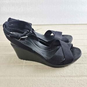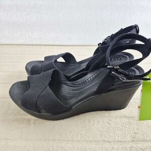 Crocs Leigh II Black Wedge Sandals Shoes Size 7w