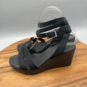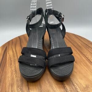 Crocs Leigh II Sandals Womens Size 9 Black Wedge Ankle Strap Wedge Casual Shoes