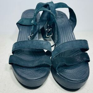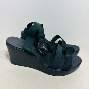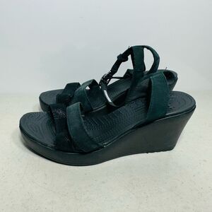 Crocs Leigh II Strap Ankle Wedge Heel Comfort Sandals Black Buckle Women 10