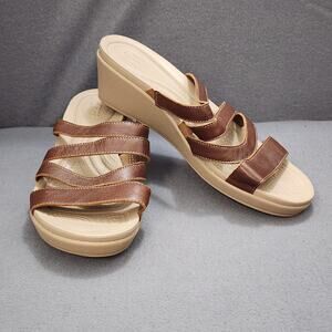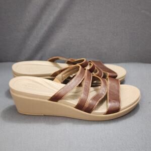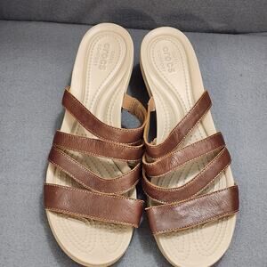 Crocs Leigh II Wedge Sandals Womens Size 10 Brown Tan Strappy Slide Comfort