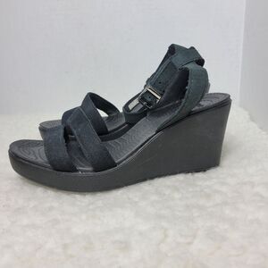 Crocs Leigh II Women's Ankle Strap Wedge Sandal Black In Good Condition See Pictures For More Details.