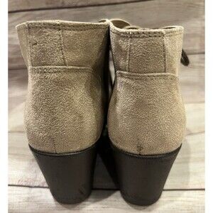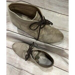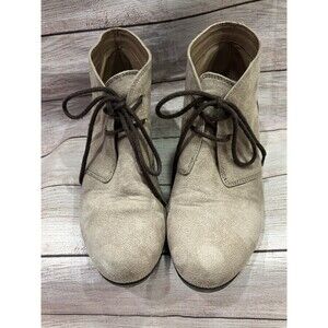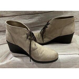 Crocs Leigh Suede Wedge Bootie Shootie Tan Beige Lace Up Shoe Womens 6.5