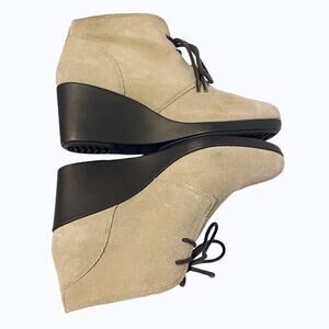 Crocs Leigh Wedge Suede Tan Booties Shootie Size 6.5