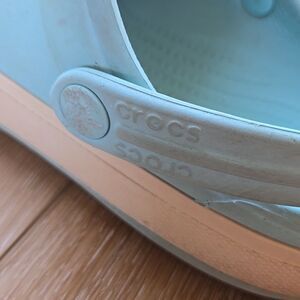 Crocs off Light Blue Clogs with Hotor hue Pink Accents 1 Watermelon crock charm included