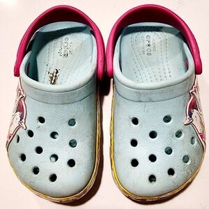 Crocs Light Blue Pink Unicorn Light Up Hearts Rubber Clog Shoe Baby Size 7