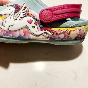 Crocs Light Blue Pink Unicorn Light Up Hearts Rubber Clog Shoe