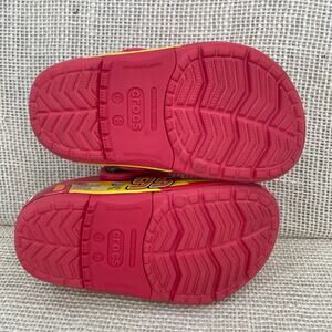 **The Cars Lightning McQueen Crocs Kids Light Up C7 are a fun and comfortable pair of shoes for kids. With the popular character Lightning McQueen from the movie "Cars," these red Crocs feature lights that illuminate when you walk. The clog style is perfect for casual wear, and the unisex design is suitable for both boys and girls in a US shoe size 7. These Crocs are a stylish and practical choice for young fans of the animated film.