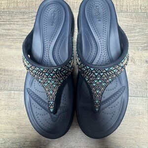 Crocs LiteRide Boca Medallion Wedge Thong Sandal Women's Size 11