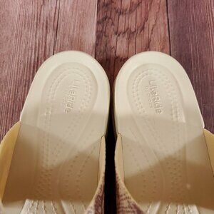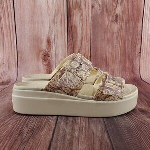 Crocs LiteRide Womens Sz 11 Brooklyn Snake Print Buckle Low Wedge Slides Sandals