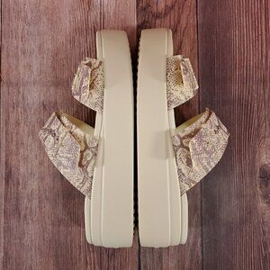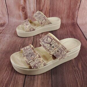 Crocs LiteRide Womens Size 11 Brooklyn Snake Print Buckle Low Wedge Slides Sandals 208244