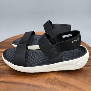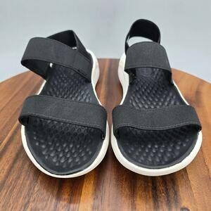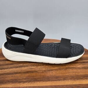 Crocs Literide Sandals Womens 7 Black Stretch Strappy Slip On Comfort Open Toe