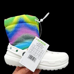 Crocs Little Girls Classic Lined Winter Boots Size 12 White Multico Soft & Warm