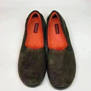 Crocs Loafers Brown Suede Leather Slip On Shoes Size 8