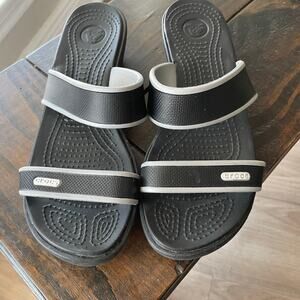 Excellent condition with lots of life left in these!! Casual double strap slip on sandals in classic Crocs comfort footbed