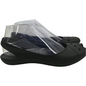 Crocs Malinidi Black Waterproof Peep Toe Slingback Shoes Size 6 Flat Comfort