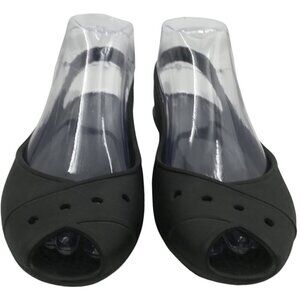 Crocs Malinidi Black Waterproof Peep Toe Slingback Shoes Size 6 Flat Comfort