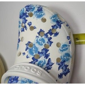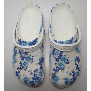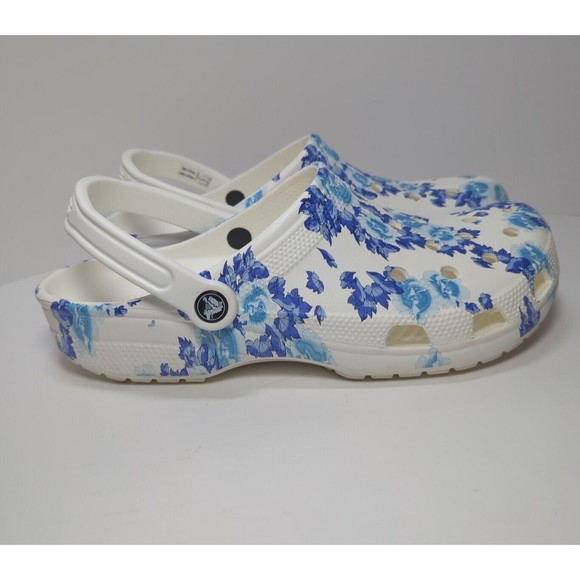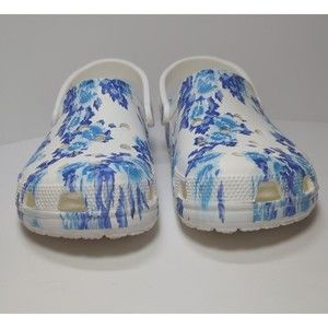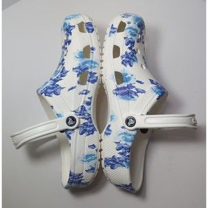 Crocs Men Size 12 Women 14 White Hawaiian Blue Flower Floral Graphic Clog 206376