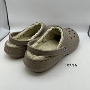 Step into ultimate comfort with these Crocs Classic Lined Clogs! Perfect for keeping your feet cozy and warm, these fuzzy slippers feature a stylish mushroom bone color that's sure to please. They are in men's size 12.