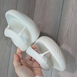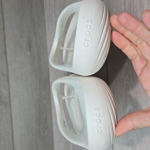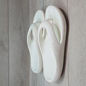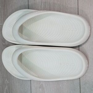 Comfortable white Crocs flip flops. Perfect for casual wear.