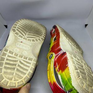 Crocs Men's and Women's Baya Tie Dye Clogs | Slip On Shoes | Waterproof Sandals Multicolor Clogs Shoes 8M-10W. Plastic, wear on paint & soles see pics, pre-owned in good condition.