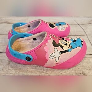 Crocs Minnie Mouse Girls Size J3 Disney Pink Crocband Fleece Lined Easy to clean