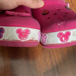 Minnie Mouse crocs, has jibbitz, signs of wear as pictured otherwise in good condition