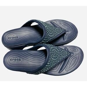 Crocs Monterey Diamante Flip Flops Sandals Women's Sz 7 Navy Blue Platform