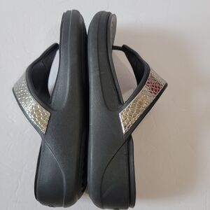 Crocs Monterey Hammered Metallic Wedge Flip Sandals Womens Sz 7 Comfort Casual
