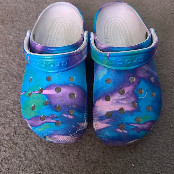 Gently worn, Colorful and comfy CROCS. Easy slip-on design. Perfect to put on an go.