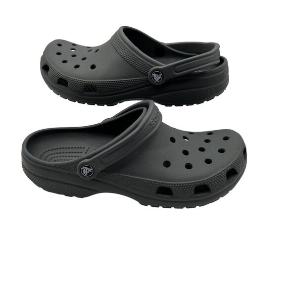 Crocs, unisex clogs size 10/12 charcoal gray comfortable footwear lightweight shoes breathable clogs casual shoes easy to clean slip-on synthetic material durable clogs everyday wear