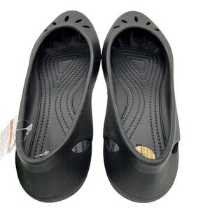 Crocs NEW Womens 8 Kelli Black Ballet Flat Shoes Slip On Cutout Comfort Loafer Iconic Beachy Hospital Office Waterproof